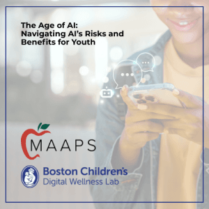 ![]() In-person at the Gifford School 177 Boston Post Rd, Weston, MA With Kaitlin Tiches, MLIS Medical Librarian & Knowledge Manager Digital Wellness Lab at Boston Children’s Hospital Explore young people’s use of artificial intelligence (AI) applications including smart speakers and generative AI tools like chatbots. This presentation will provide an overview of how young people…